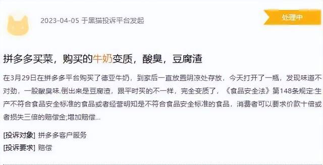 然浏览黑猫投诉,截至2023年4月25日20时,“德亚牛奶”相关投诉367条,涉及牛奶变质、虚假宣传高蛋白、不发货且不退款等质疑。