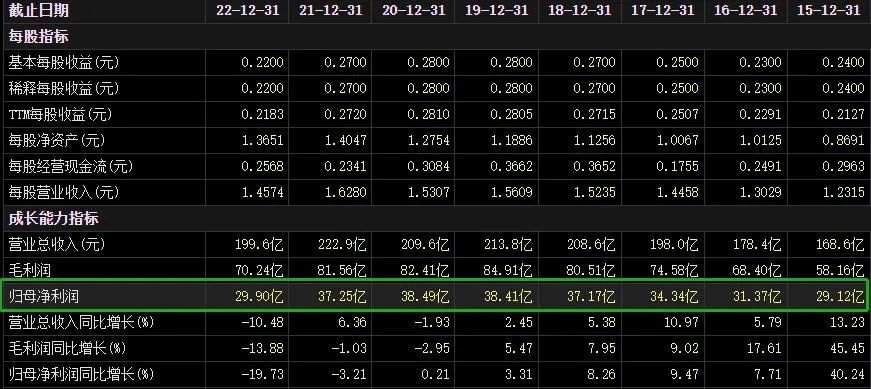 净利近两年连续下滑。2015年为29.12亿元;2022年为29.90亿元。毛利率为35.2%,同比下降1.4个百分点。成长性、稳健力、业绩质量有待提升。