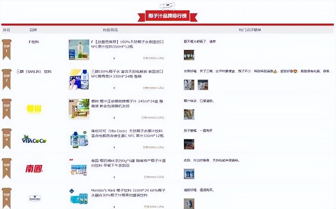 浏览京东“椰子汁品牌排行榜”发现,椰树排名第三位,除了IF饮料、三麟,唯他可可、南国、山姆、欢乐家等新老品牌也表现靓丽。