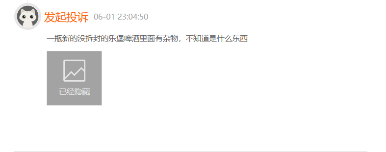 比如乐堡啤酒、乌苏啤酒。投诉编号17366765861显示,消费者在一瓶新的没拆封的乐堡啤酒里发现杂物,不知道什么东西。投诉编号17369121985则显示,小区门口超市买了两瓶,一瓶都快喝完了发现有很多沉淀物。