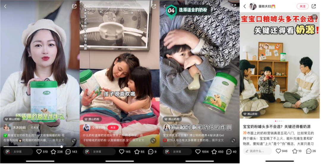 2023年,辉山奶粉加速抖音、小红书等社交平台布局。通过与母婴达人、头部KOL合作,增加品牌曝光度的同时,深度种草力也强化了用户认知、认同感。