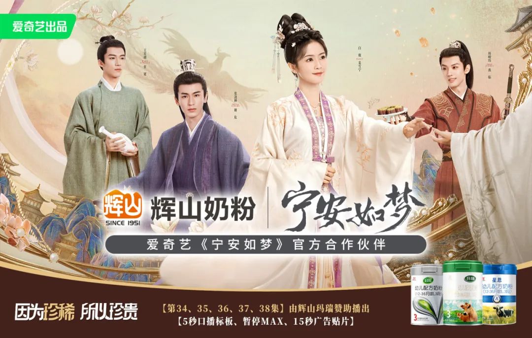 此外,辉山奶粉在2023年升级品牌营销战略,开启双代言人模式。并通过深化IP,与芒果TV《女士的品格》等热门剧合作,投放爱奇艺《宁安如梦》《一念关山》两部热剧,来加强消费者的品牌认知、消费认同。
