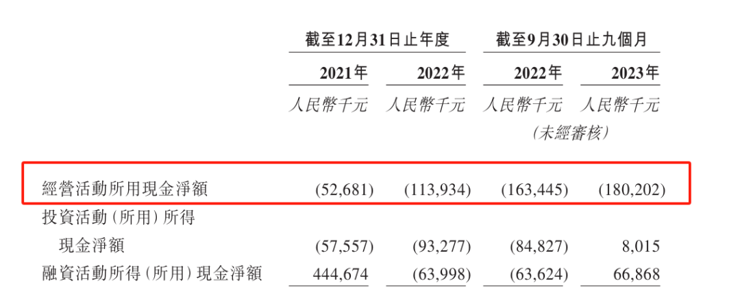 2021年-2023年前三季,企业融资活动所用现金净额分别为4.45亿元、-6.4亿元、6.69亿元,意味着在难以造血时,所用资金多源于外部融资。