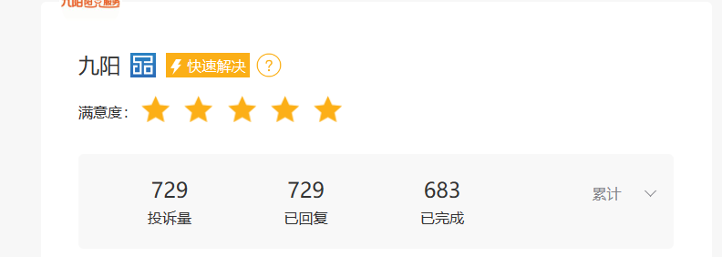 浏览黑猫投诉,截至2024年4月17日20时,九阳股份累计投诉729条,其中不乏产品质量质疑。