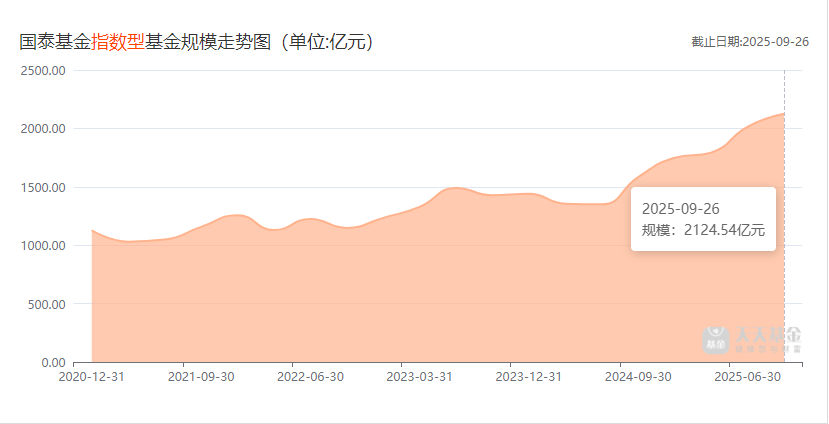 天天基金网显示,截至9月26日,国泰基金ETF基金最新规模2124.54亿元。排在华夏、易方达、华泰柏瑞、南方、嘉实基金、广发、富国基金之后,位列公募市场ETF规模第8位。