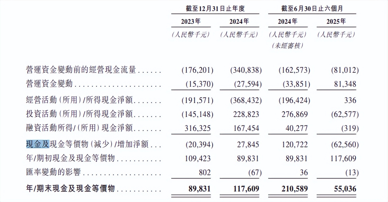 然这仍不足以满足资金需求。2025年6月底,公司现金及现金等价物仅剩5503.6万元,较上年同期的2.11亿元减超7成。若延续该烧钱速度,后续现金流压力可想而知,此番IPO也有背水一战的急迫感。
