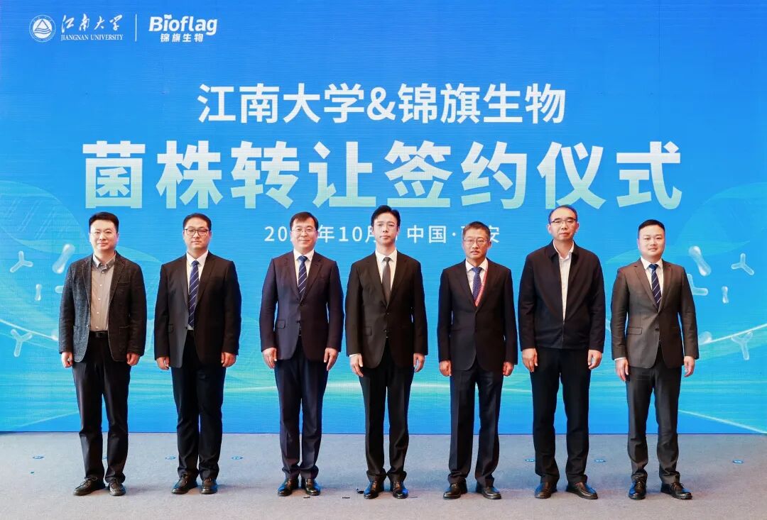 签约仪式上,江南大学将CCFM1025和CCFM1074菌株及专利转让给锦旗生物,正式启动该菌株的产业化落地和商业应用推广。其中,短双歧杆菌CCFM1025经体外、动物及临床研究实证,能够显著改善睡眠质量[1]、调节情绪状态[2]并提升认知功能[3],相关研究已获得5项中国发明专利授权,发表超10篇SCI期刊文献。副干酪乳杆菌CCFM1074经动物试验实证可增加短链脂肪酸水平,调节肠道菌群和免疫细胞比例,改善Th17/Treg免疫失衡所致疾病,如类风湿性关节炎[4]、银屑病等,相关研究已发表多篇国际期刊文献,获得2项中国发明专利授权。