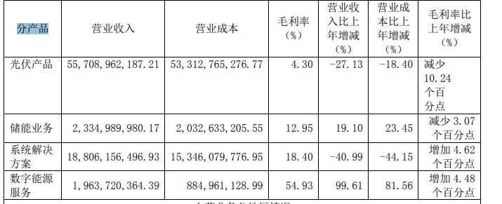 深入业务面,第一收入来源光伏产品成了拖累主因,2024年营收同比减少27.13%至557.09亿元。2025半年报也坦言,报告期内保持了光伏组件产品业务的核心竞争力,组件销量较去年同期实现增长。但受制产业链供需失衡、光伏产品市场价格持续处于低位影响,组件业务盈利能力下滑,上半年经营业绩出现亏损。