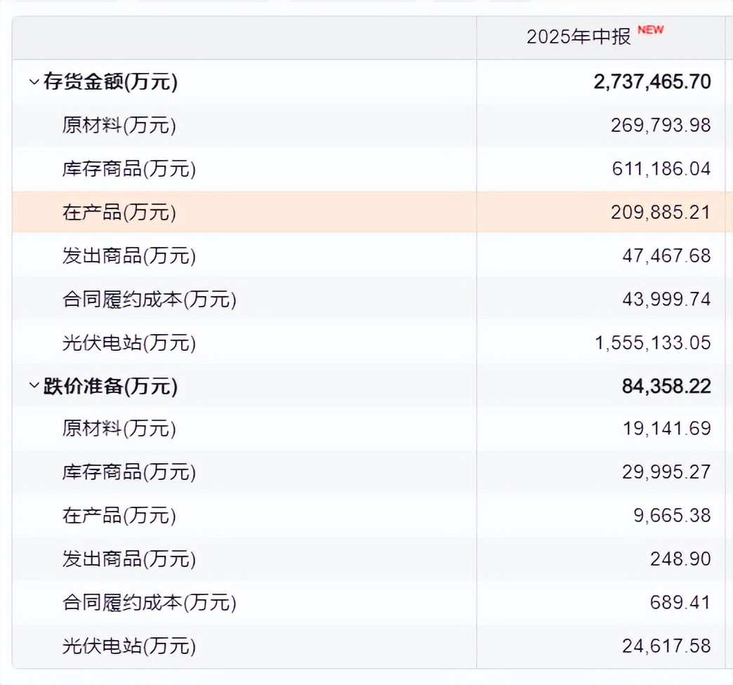 截至2025年9月末,公司现金及现金等价物166.5亿元,难完全覆盖169.78亿元的短期债务(短期借款与一年内到期非流动负债之和)。同时,公司存货规模升至265.4亿元,较2021年扩张前的86.43亿元增长显著。2025上半年公司计提存货跌价准备达8.44亿元,继而加剧了亏损压力。
