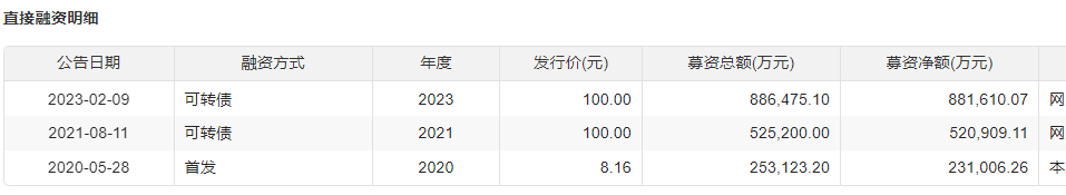 2023年2月,计划发行不超88.65亿元可转债,投向年产35GW直拉单晶项目;4月,又宣布拟投资50亿元在淮安建设年产10GW新一代高效电池项目;5月,计划在四川什邡投资约107亿元建设年产25GW单晶拉棒项目,其中公司出资约87亿元;6月,进一步披露拟通过定增募资不超109亿元,用于淮安、东台等地的高效电池及组件项目。