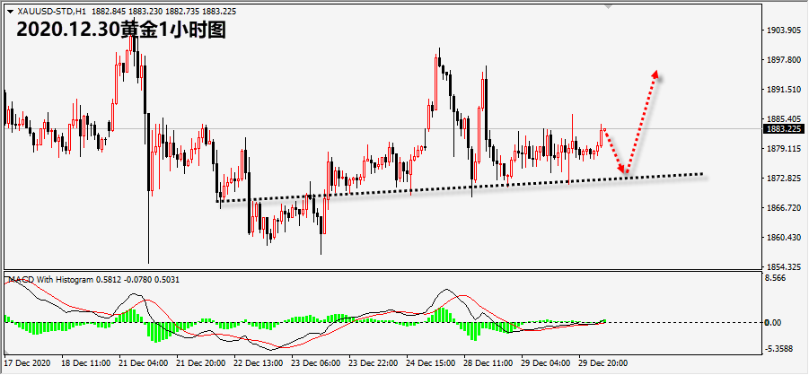 黄金策略:1872区域多,止损1866,目标1886,1895