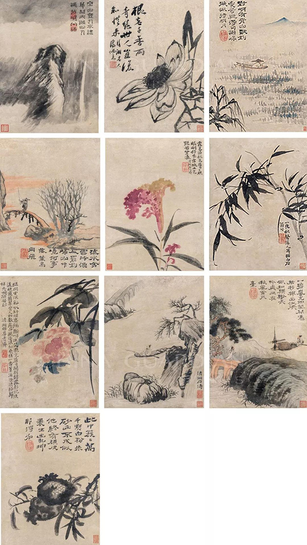 石涛 《浅降山水花卉册页》 (十开) 32.5×24.5 cm(每幅)
