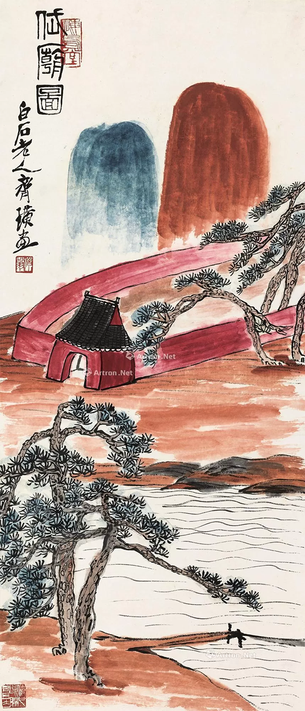 齐白石《岱庙图》纸本 113.5×48cm