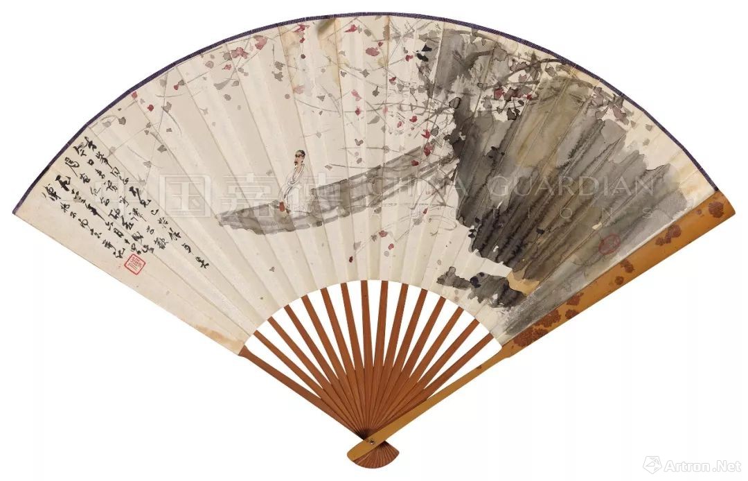 让人用不起的“扇子”,傅抱石也有一把,只不过是在近现代书画日场的拍卖中,傅抱石《西风吹下红雨来》成扇也以419.75万元的高价成交。