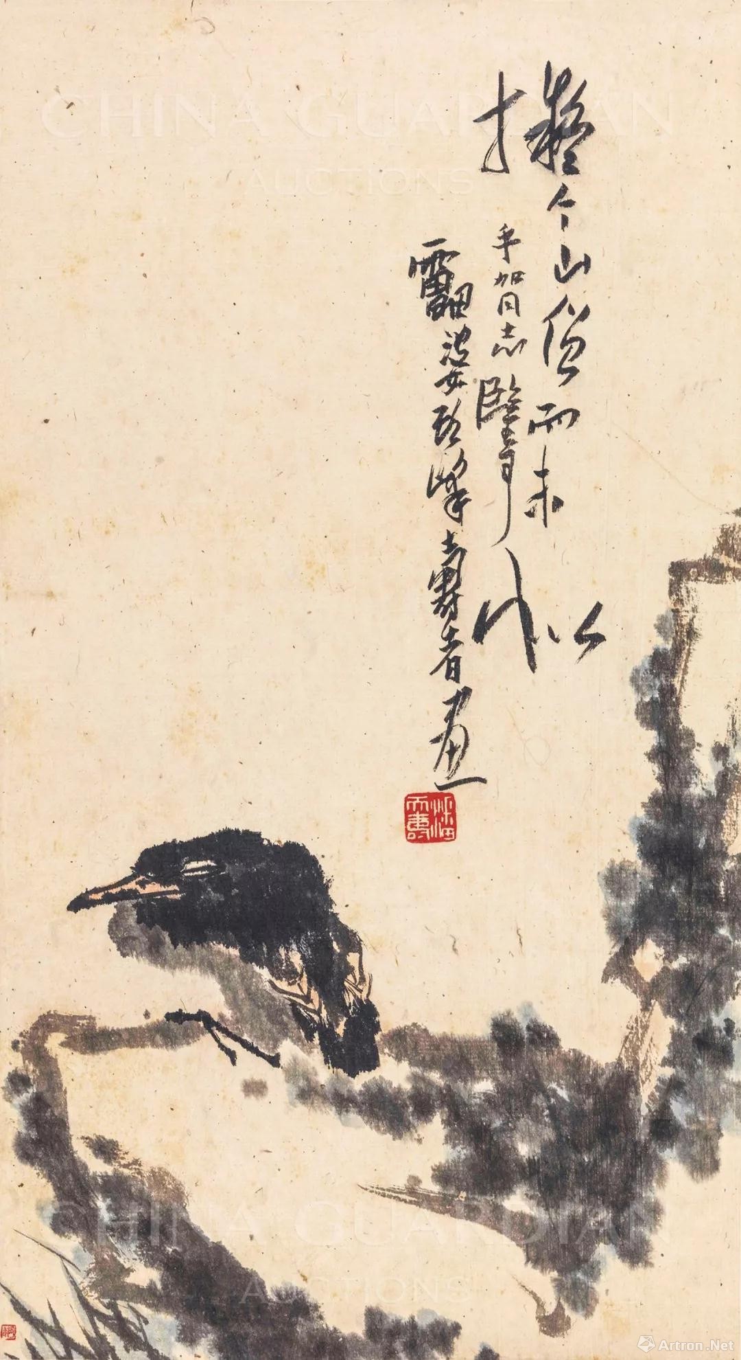 潘天寿 《湖石憩禽》 61×34 cm
