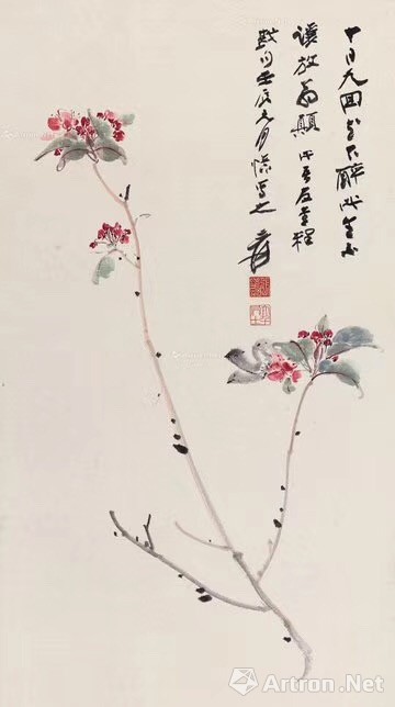 张大千 《西府海棠》 立轴 71×39cm