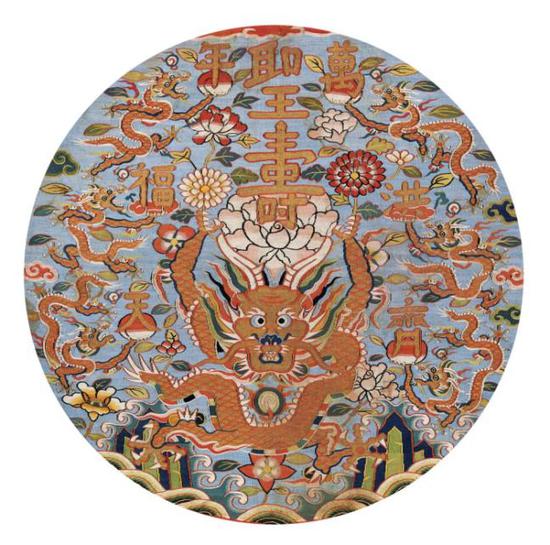 (宋代罕见顶级缂丝《圣寿万年 洪福齐天》图 尺寸:直径36厘米)