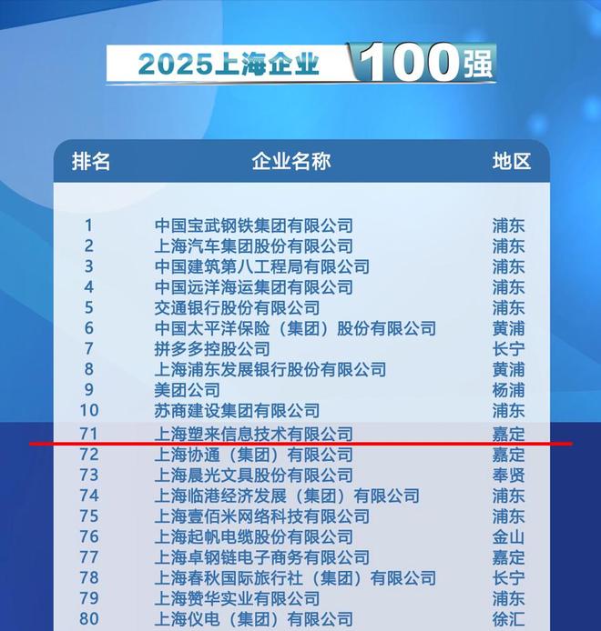 “上海百强企业”旨在表彰为推动上海经济和社会发展做出突出贡献的优秀企业,以上年度企业营业收入为入围标准,以其权威性、客观性和公正性,受到政府、企业和社会各界的高度重视,是上海极具影响力的企业排行榜,被视为上海经济高质量转型发展的“晴雨表”。