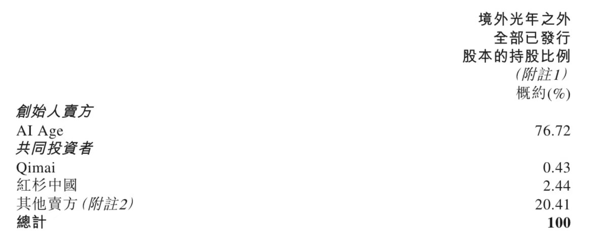 光年之外股权信息可以看出,AI Age 持股76.72%,Qimai持股0.43%;红杉中国持股2.44%。
