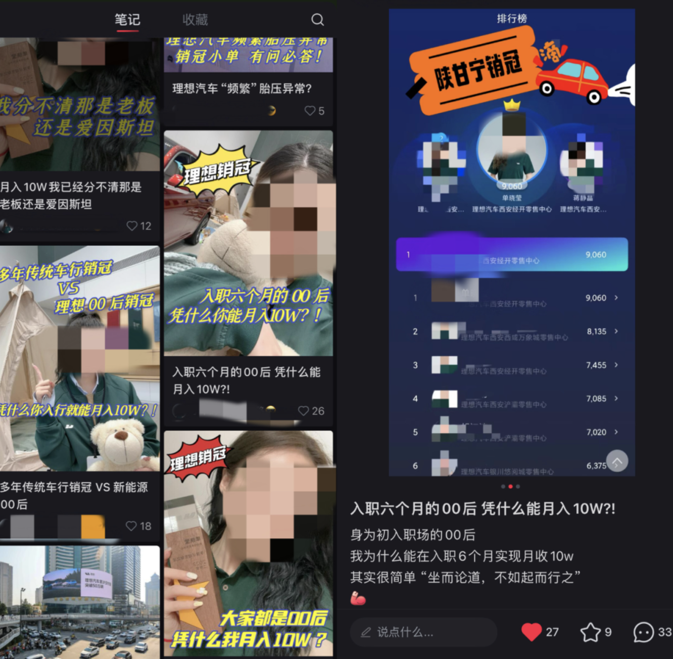 在社交媒体上以“理想销售、蔚来销售”等为关键词搜索可以看到,诸多博主晒出了自己从不同行业转行去做新能源汽车销售的经历,其中空姐成为今年来转行的主力军。