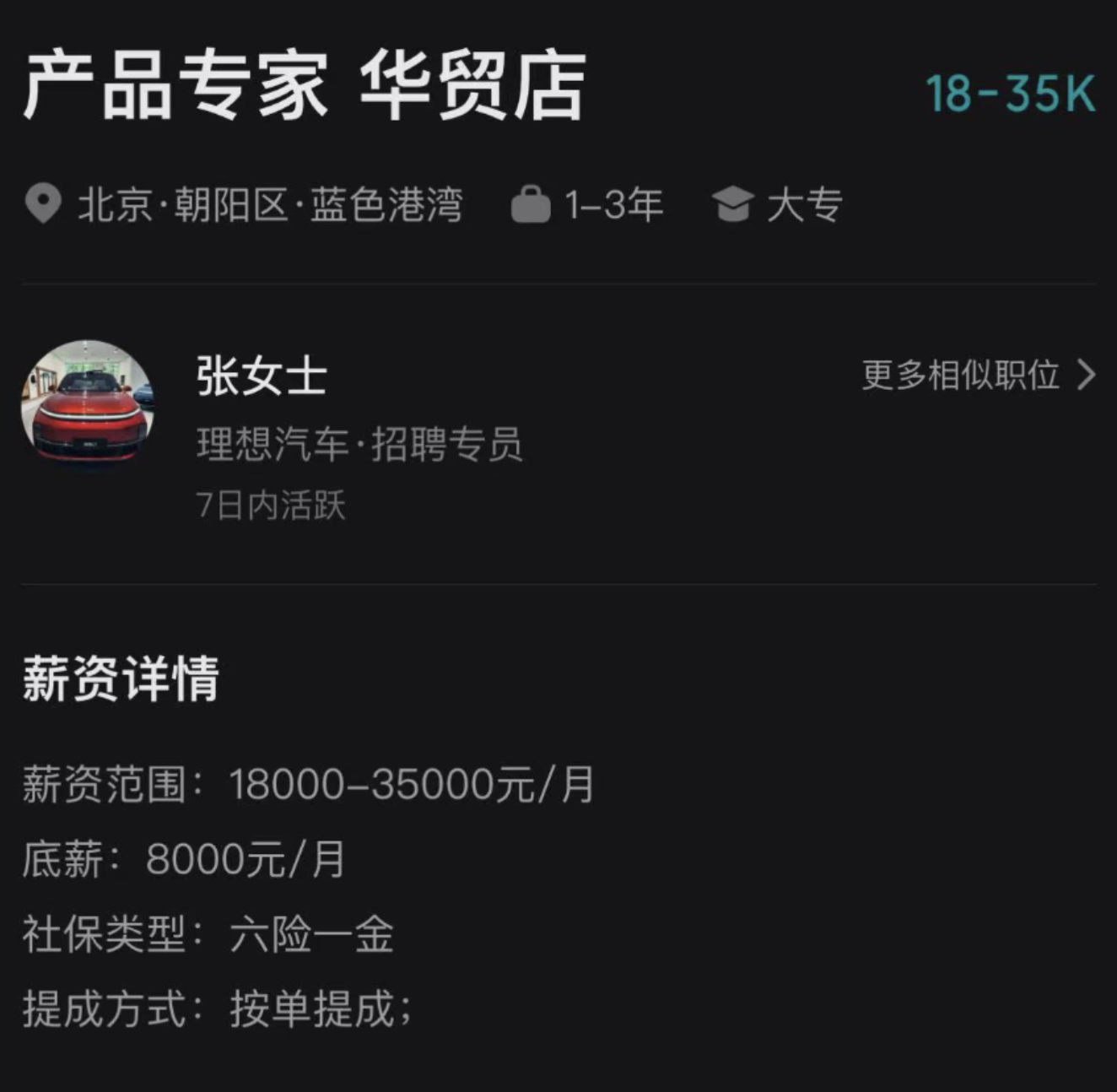 随后,记者从招聘平台上了解到理想销售在全国各地的薪资范围。