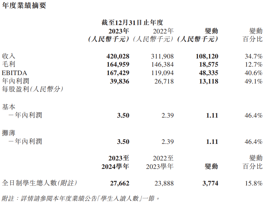 财报显示,2023财年,21世纪教育的收入为4.2亿元,较于上年同期的3.12亿元,增长了34.7%。21世纪教育表示收入的增加主要是由于石家庄理工职业学院就读人数增加导致的收入增加以及普通高中业务收入的增加。