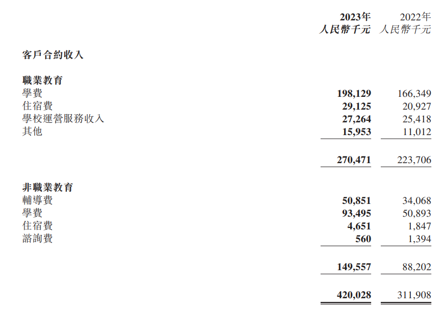 在收入构成上,21世纪教育职业教育的收入为2.7亿元,占总收入的64.39%,与2022财年相比增长了20.9%;非职业教育的收入为1.5亿元,同比增长69.56%。