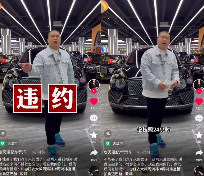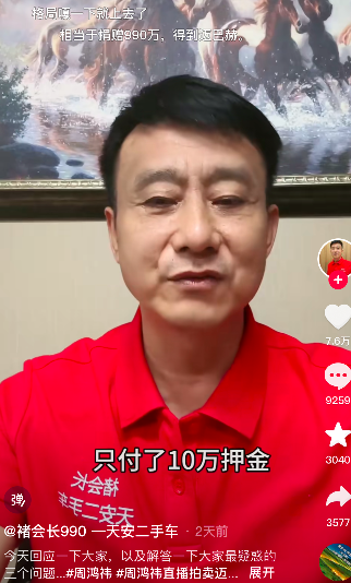 不只是该博主,多位参与竞拍的二手车商昨晚都在直播时透露,周鸿祎没有收到车款。一时间,买家褚会长成为众矢之的,同行纷纷指责其缺乏契约精神。