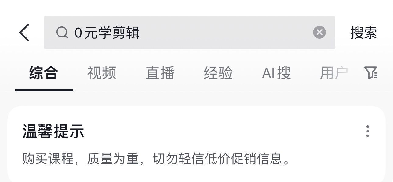 因此用户搜索相关关键词时,平台会置顶显示“购买课程,质量为重,切勿轻信低价促销信息”的提示语。为什么仍有大量受害者陷入圈套呢?