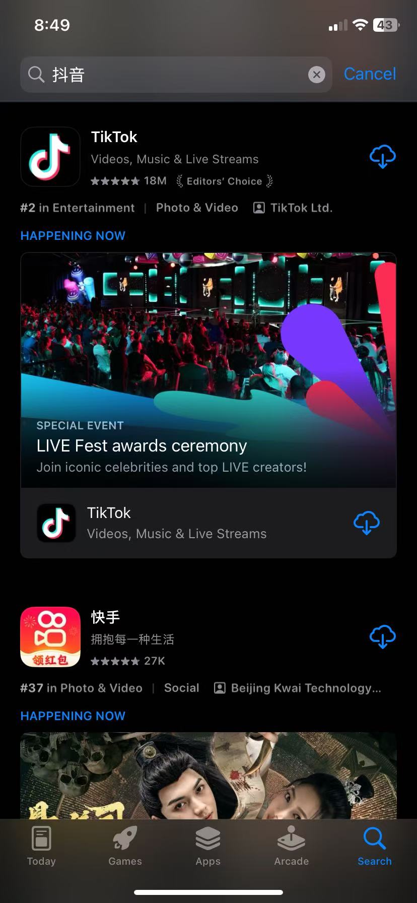 当然,不可否认的是,随着抖音海外版TikTok“不卖就禁”法案临近最后期限,即将关闭的缘故,也有TikTok海外用户正在想法设法使用中国App。