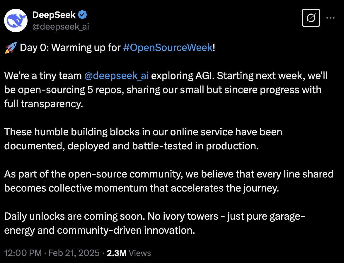 图片来源:DeepSeek在社交平台上官宣“开源周”