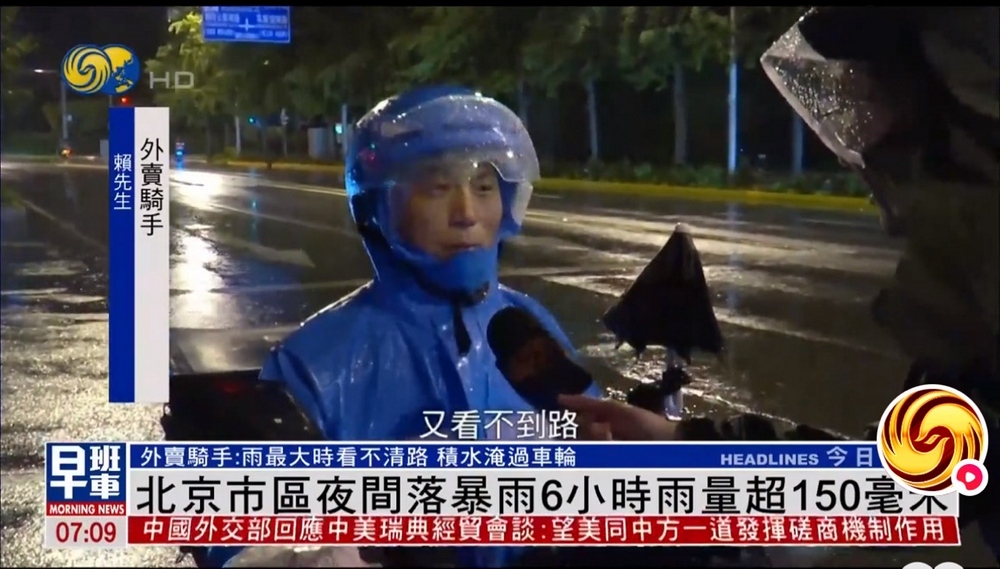 北京暴雨中的骑手:有人一天工作12小时,平台超时免责、提供补贴