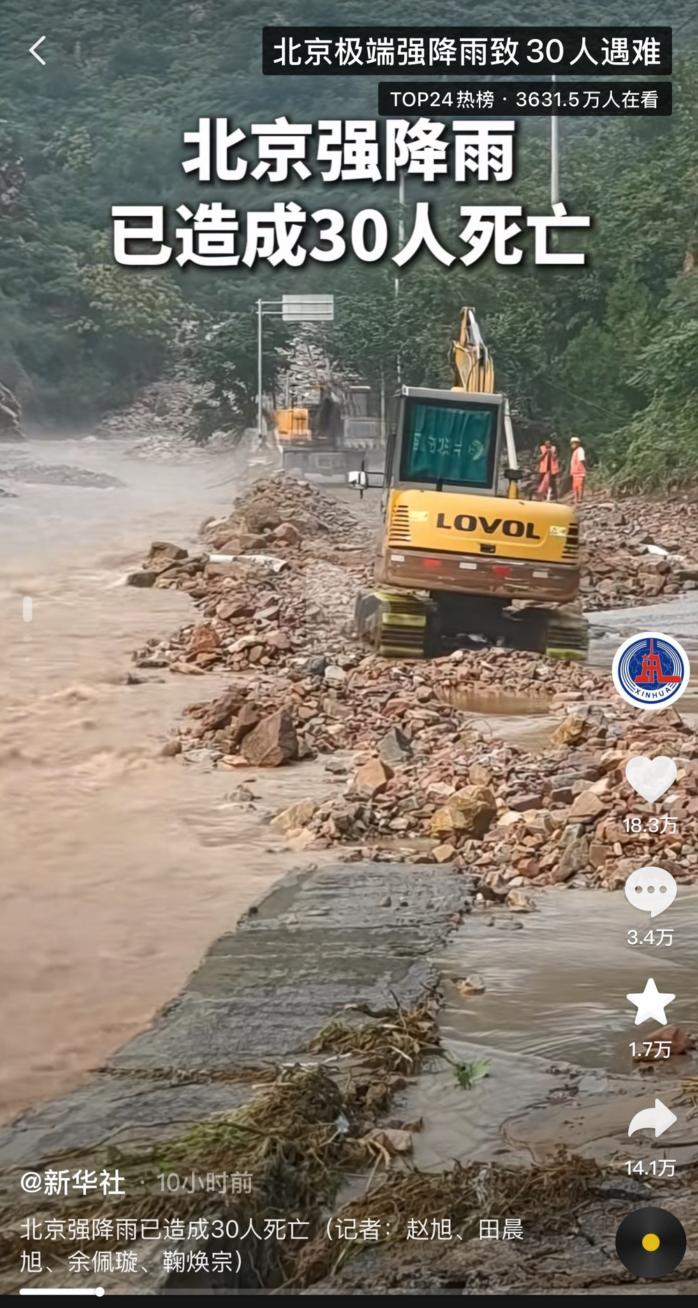 面对灾情,人保财险、中国平安、中国太保产险等多家险企已启动应急响应机制。以人保财险为例,北京分公司立即启动大灾应急响应,开通绿色理赔服务通道,按照汛期八项承诺开展理赔工作,并同步简化理赔资料。从报案、理赔情况来看,人保财险数据显示,24日18时至28日8时,全市因暴雨灾害累计报案445件,初步估损1350万元,主要为车险、家财险及农险,车险报案241件,家财险200件,2笔农险2件,已全部赔付完成。