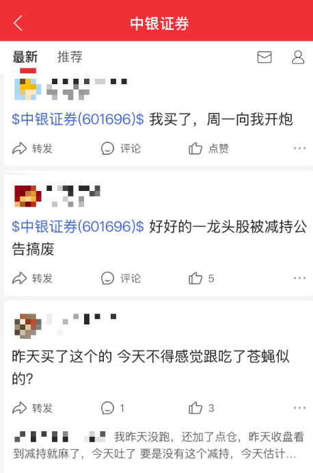 然而,记者关注到,部分中小投资者对股东高位放话减持的动作有所不满,不少投资者在交流平台直言“踏错节奏”,更有人自嘲式调侃“别人靠券商吃肉,我在中银证券‘躲’牛市”,颇有怨言。