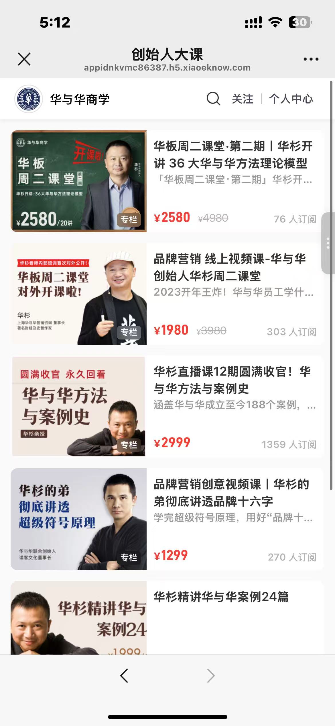 目前“华与华”的课程主要分为两类,即线上课程与线下课程,其中线上课程包括华杉亲授的“华与华方法与案例史”售价2999元、“华杉精讲华与华案例24篇”售价1999元,非创始人主讲的课程则价格相对较低普遍在100-500元间。