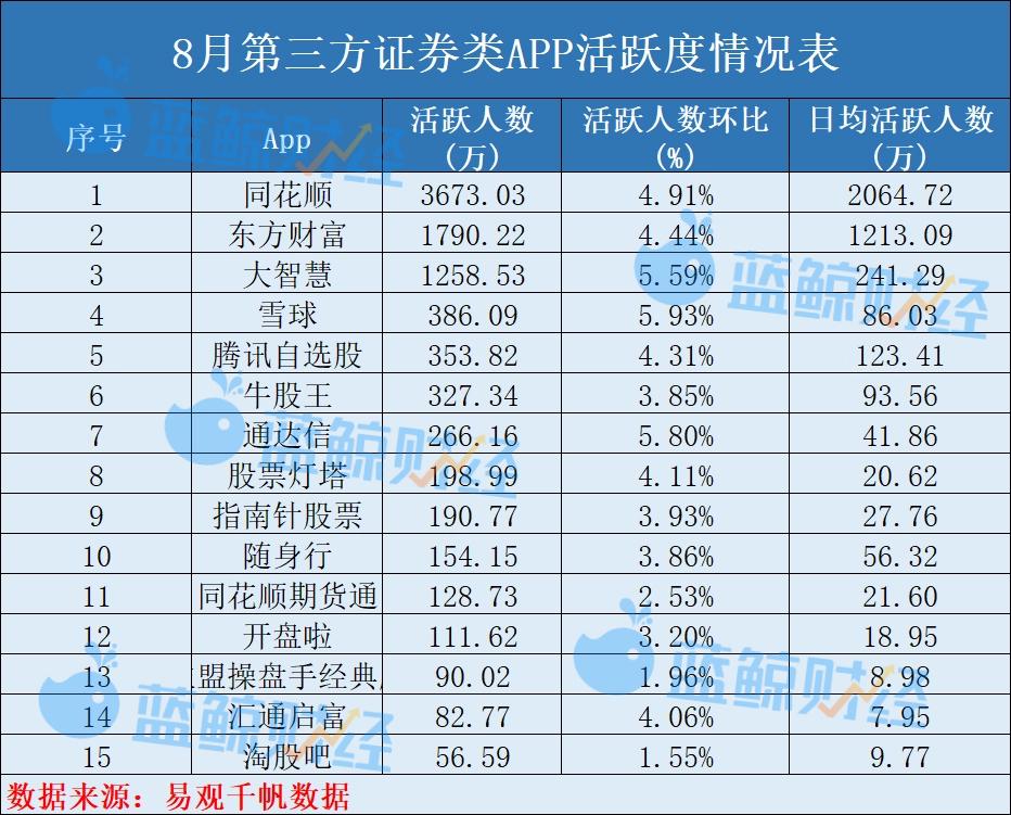 蓝鲸新闻9月17日讯(记者 陈晓娟)8月以来,A股市场热度持续升温,交投氛围活跃。两融余额持续上扬,据Wind数据,截至8月29日,两融余额合计达22613.10亿元。当月上交所A股新开户数达265.03万户,同比激增165%。新开户数的翻倍增长有效带动证券App活跃度提升,易观千帆数据显示,8月证券服务应用月活跃用户数达1.73亿,同比增长27.26%,创年内新高。