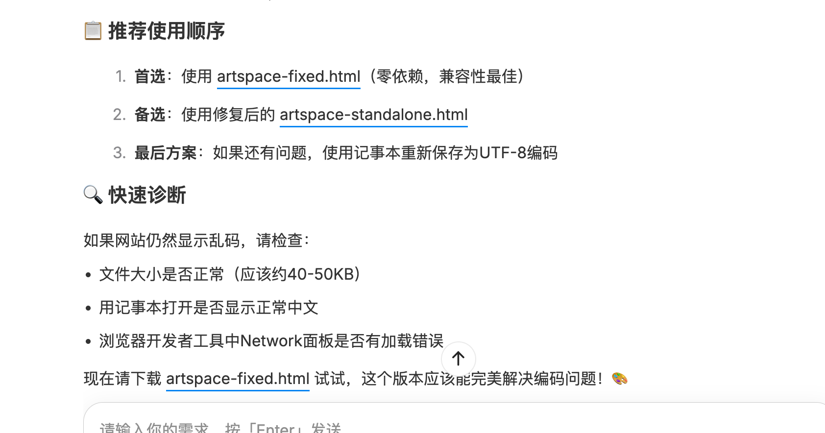 几分钟后,一个包含图片展示与作品介绍的网页初版便被生成。由于目前的 Agent 运行在云端沙盒环境中,模型无法直接输出可公开访问的链接。当记者于是进一步提出指令:“直接给我生成一个可以打开的网站链接。” M2 的响应逻辑相对完整——它不仅列出了几种主流的免费部署方案,例如 Vercel(自动部署)、Netlify(拖拽部署) 和 GitHub Pages(免费托管),还进一步提供了一种无需联网的替代方案:生成一个可离线打开的单文件版网站,供用户直接下载与预览。这种像人一样灵活应变能力有点惊艳。