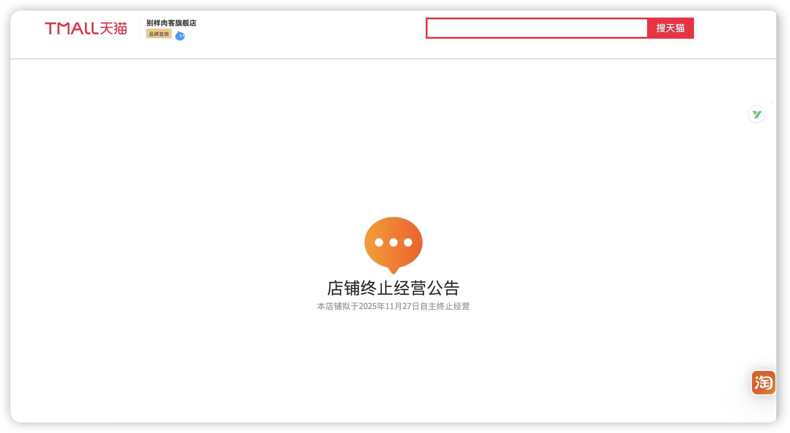 11月27日,蓝鲸新闻记者注意到,天猫“别样肉客(Beyond Meat)官方旗舰店”首页弹出提示:“本店拟于2025年11月27日自主终止经营”,其拼多多旗舰店页面则显示“服务器错误”。