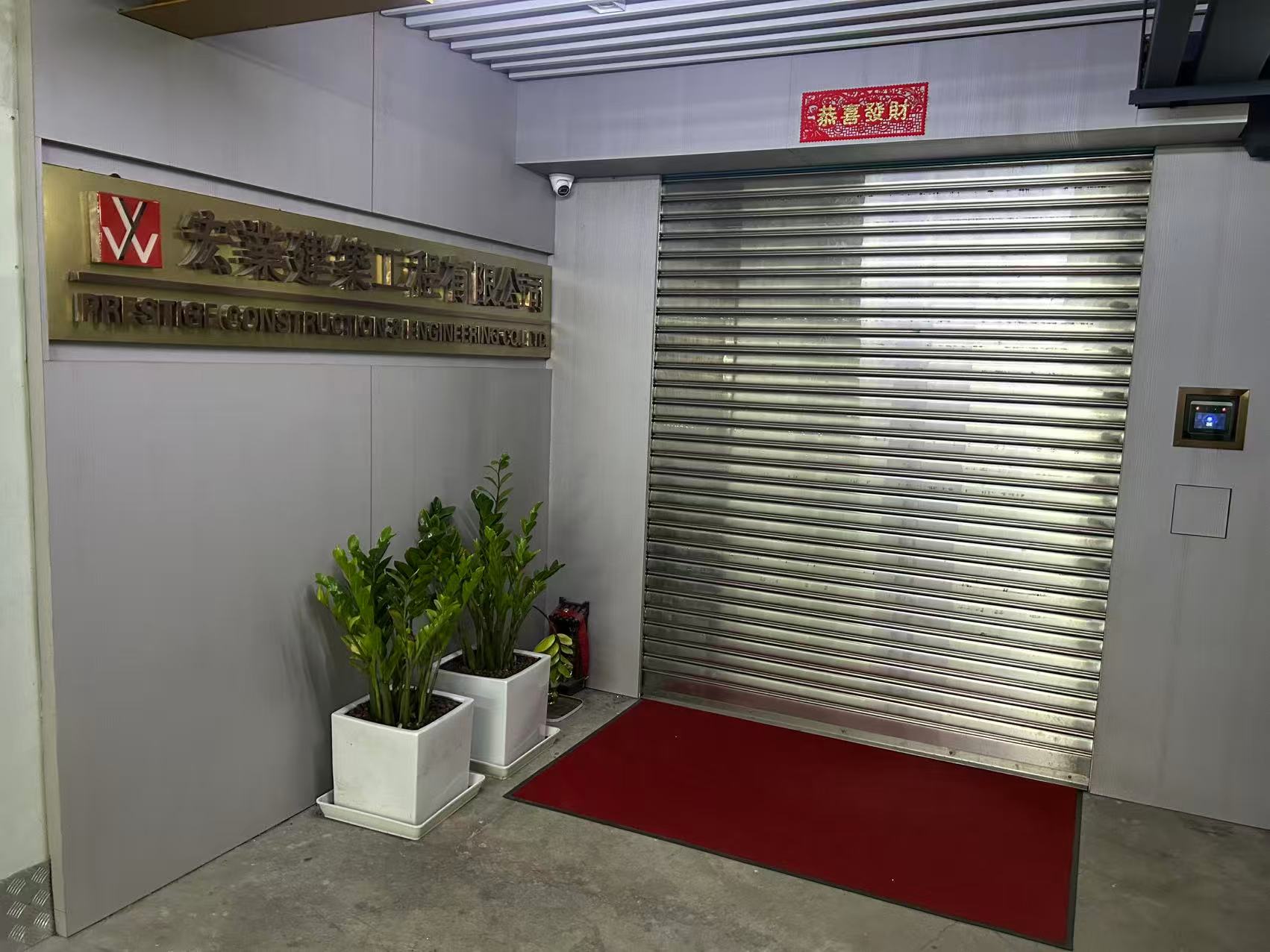 宏业建筑已拉上铁闸。(李卓玲摄)