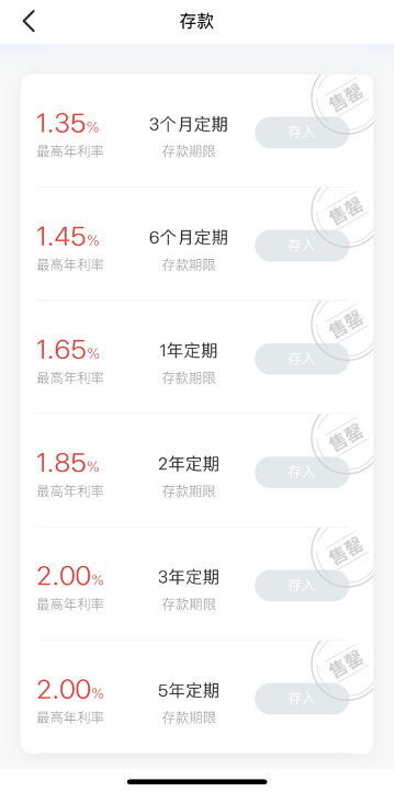 近日,蓝海银行App显示,该行名为“蓝宝宝”的3个月、6个月、1年、2年、3年及5年期定期存款均被标上“售罄”标识,无法购买。7天通知存款亦处于售罄状态。处于在售状态存款产品的仅余3个月及6个月的美元定期。
