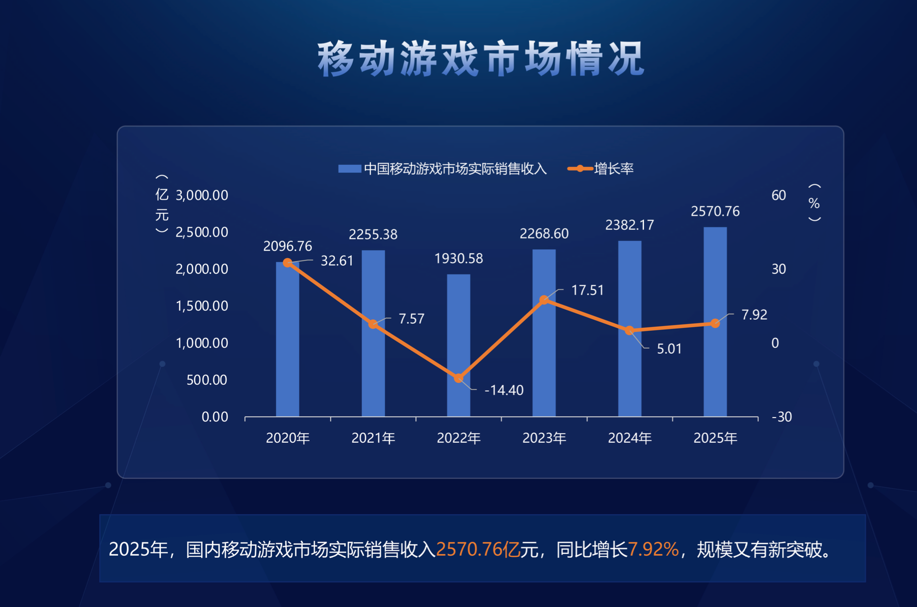 2025年,国内移动游戏市场实销收入2570.76亿元,同比增长7.92%,规模又有新突破。