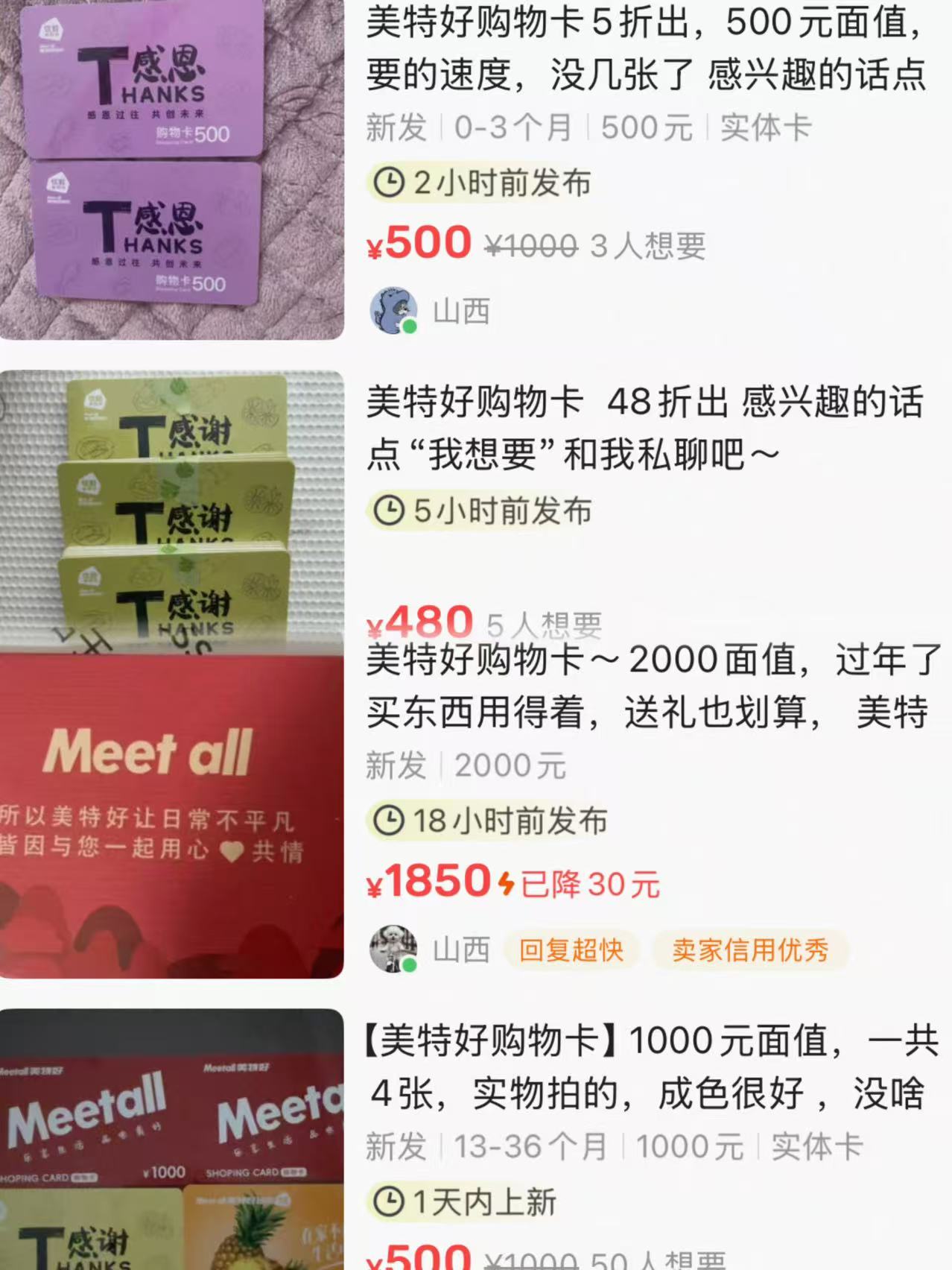 美特好的清仓、闭店,涉及了消费者预付卡使用的问题。蓝鲸记者了解到,不少山西消费者拥有美特好超市的预付卡,储值金额往往200-2000元不等。没有预告的闭店,引发预付卡消费者的兑付潮,虽然美特好官方发布公告,呼吁大家理性应对、美特好购物卡可以在后续新开门店继续使用,但仍有大量消费者挤兑,并且在二手市场出现打折出售美特好预付卡情况。