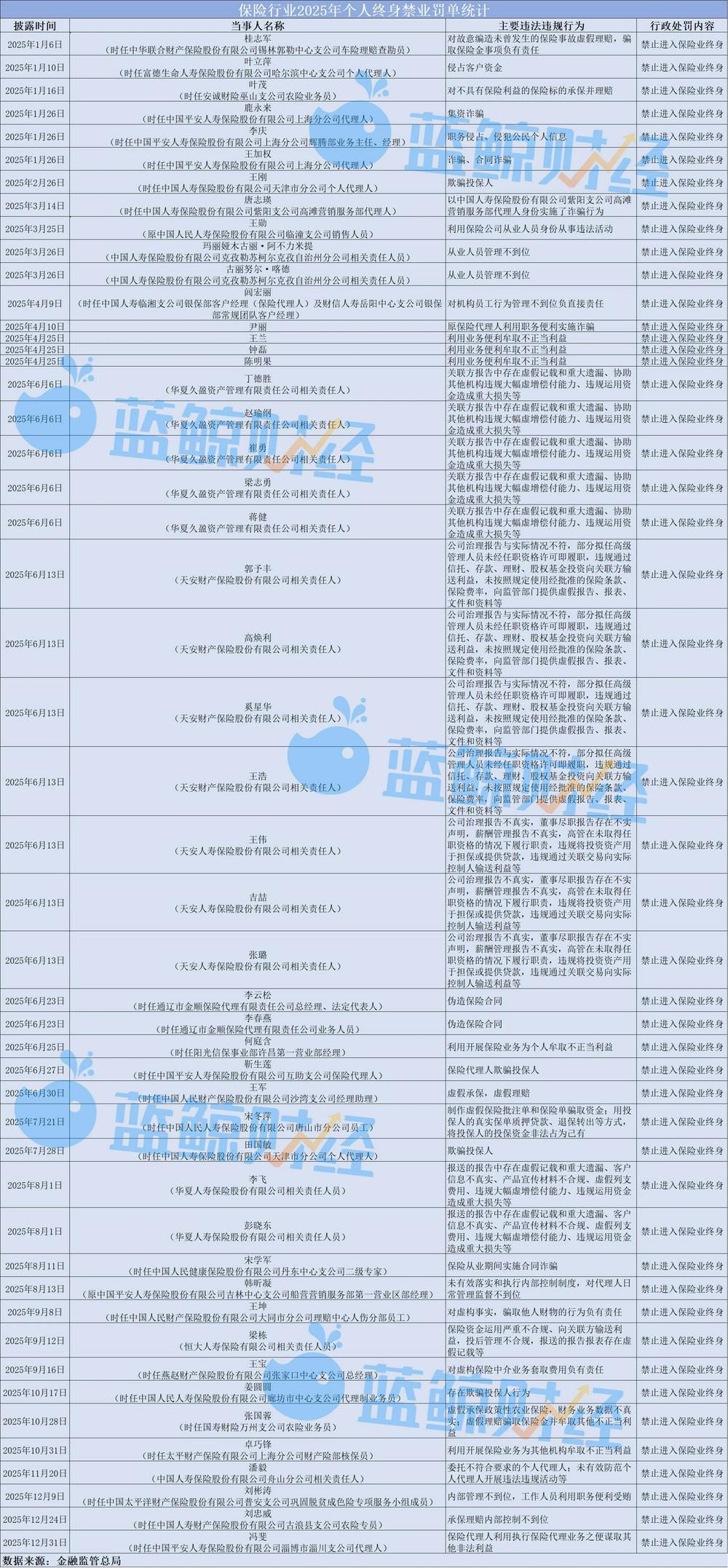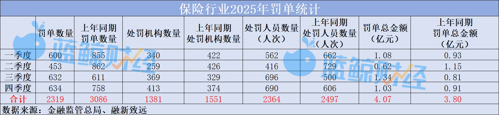 2025年保险业两千余张罚单罚超4亿,百万级“大单”频出,49人遭终身禁业|年终盘点