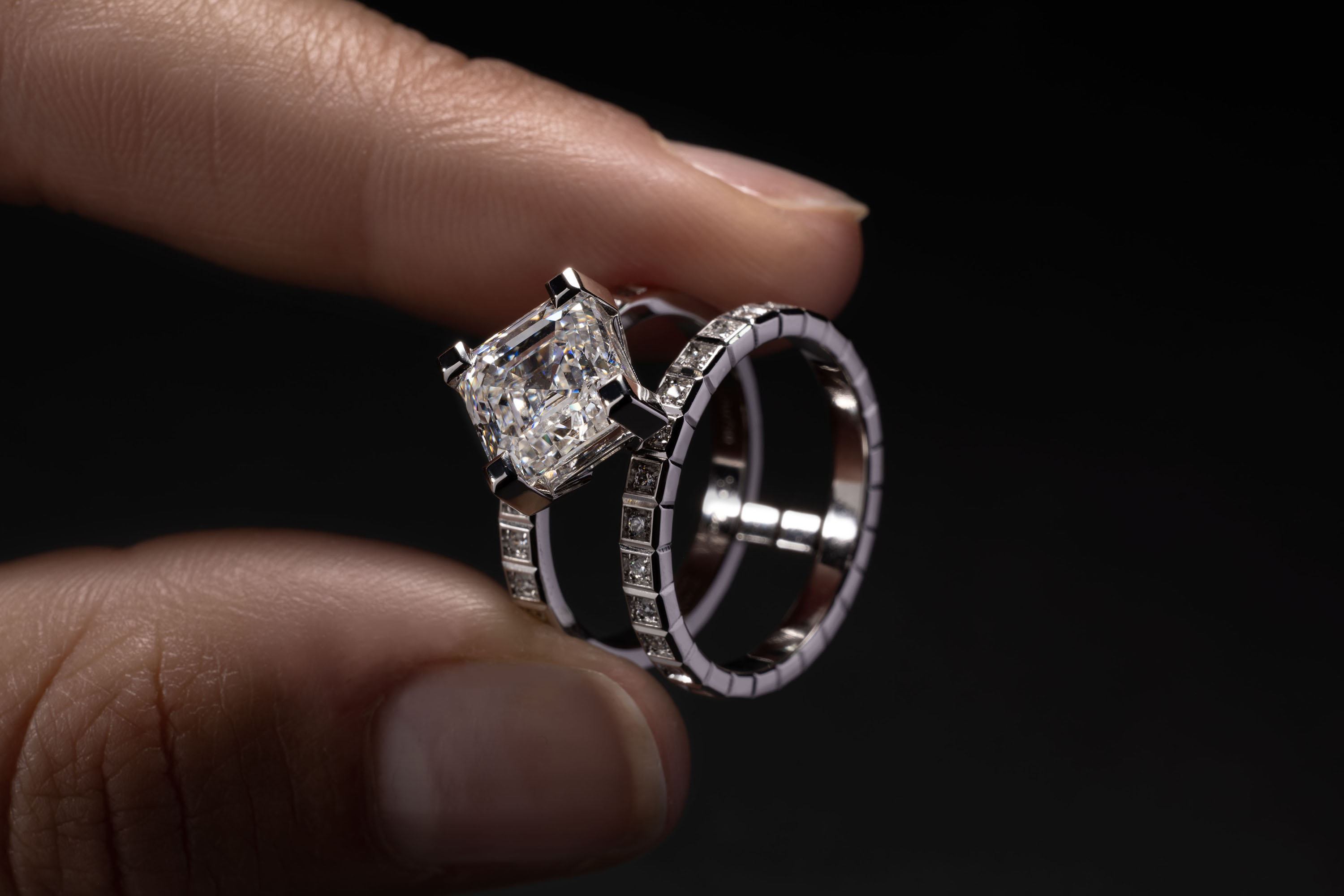 “Shapes of Extraleganza奢雅之形”高级珠宝系列以几何形态为核心,围绕正方形、三角形、锯齿、波浪与圆弧等多种结构进行重组与排列,呈现出具有体积感与构图张力的设计风格。系列整体强调结构性与视觉层次,融合高抛光金属表面、对比材质与精密镶嵌,展现品牌在几何语言与工艺细节上的探索。