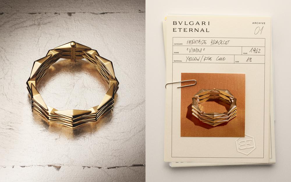全新Eternal系列以品牌典藏设计为基础,融合现代工艺语言。首款作品Vimini手镯灵感源自1942年的一款历史作品,造型采用波浪起伏的结构,呼应意大利理性主义美学中强调的几何秩序与形式简约。新作采用18K黄金打造,链节之间以隐形柔性结构连接,构建出具有韧性的连续曲线,佩戴时可自然贴合腕部。在男士造型中,可作为腕表之外的金属饰品选项,起到结构衔接与视觉平衡的作用。