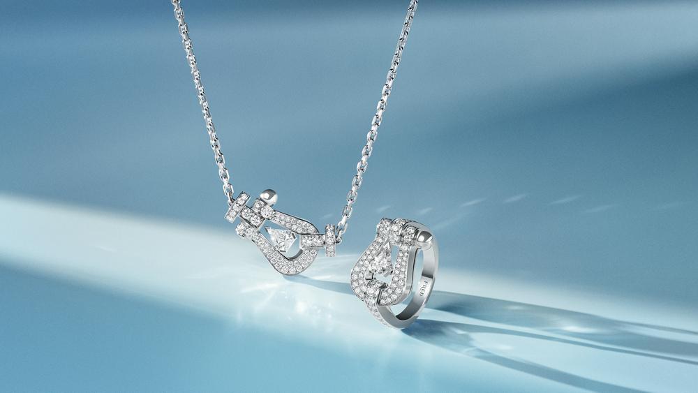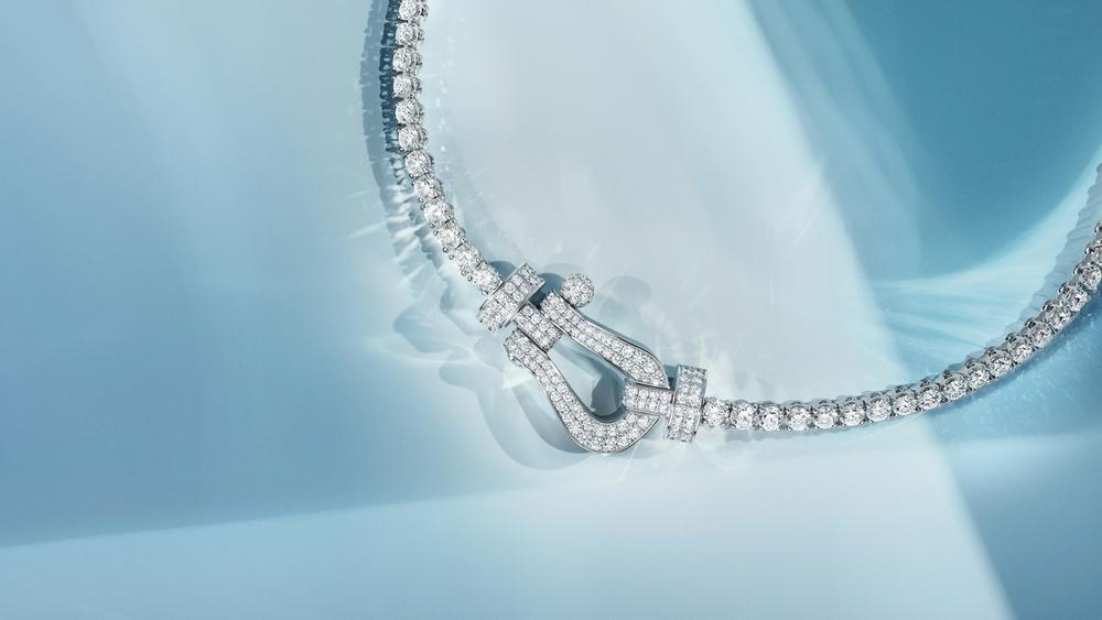 第二组作品围绕大号航海扣进行进一步演绎,包含一款钻石全铺镶链式项链与一枚图章戒指,均在中心镶嵌以FRED Hero Cut切割工艺打造的主钻石,强化几何轮廓与视觉聚焦。在保持Force 10系列力量感特征的同时,强化了装饰性与仪式感。