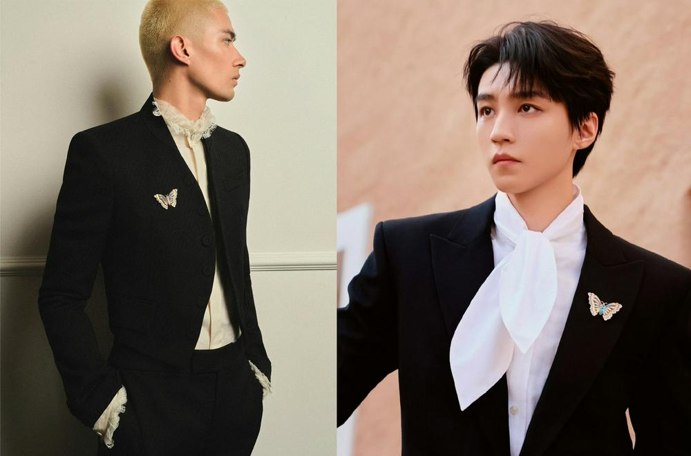 蝴蝶一直是布契拉提创作灵感的源泉之一,它代表着优雅、轻盈、蜕变和对重生的渴望,彰显了品牌的卓越品质以及一个多世纪以来品牌所沿用的金匠传统。相较于传统男士饰品常见的几何构型,蝴蝶造型在男装中更具鲜明表达力,通过色彩与材质反差打破传统正装的沉稳基调,形成视觉停驻点。