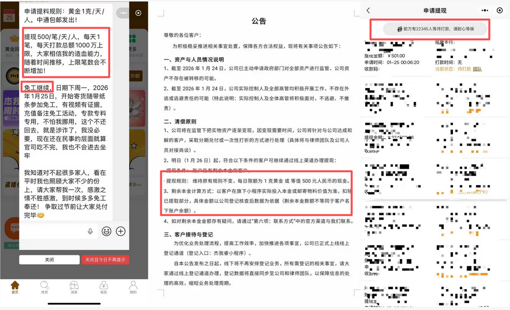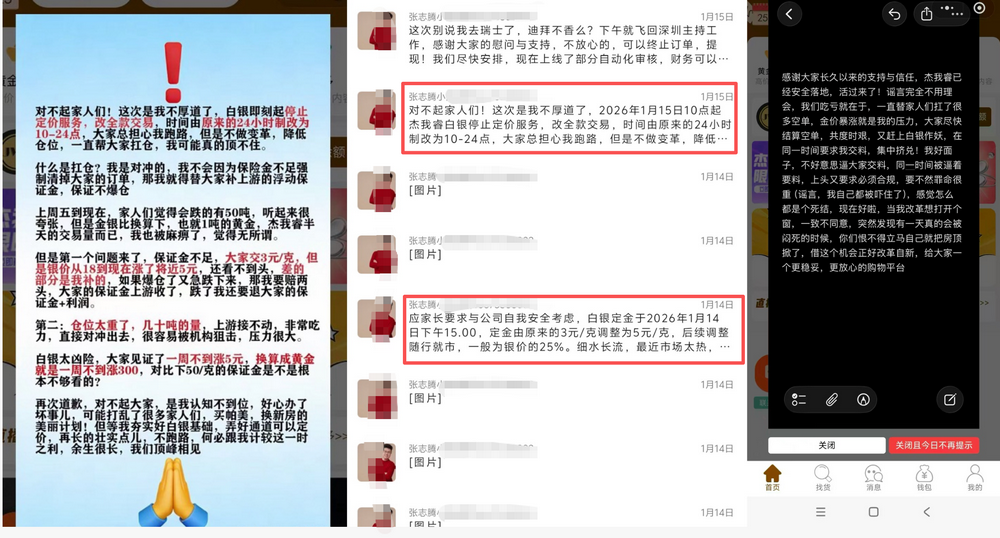 实际上,危机早有迹象。有受访用户反馈,除保证金和保管费增长,白银提货时间也从3-7天逐渐变化为15-40天左右,甚至早在12月底就已经开始出现打款速度变慢的情况。2026年1月,平台停止新用户注册。