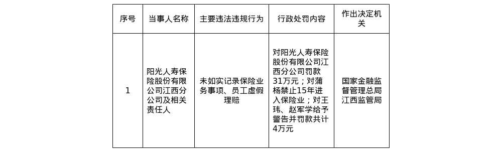 阳光人寿江西分公司被罚31万,涉员工虚假理赔等