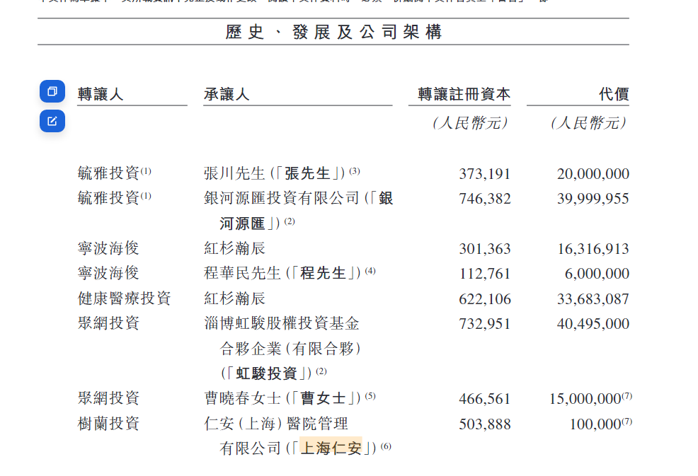 但在五轮融资推高估值的光鲜背后,此前其招股书披露的一系列股权转让却引发了市场的广泛质疑。以2020年8月控股股东树兰投资以10万元的价格向一家名为上海仁安的公司转让了50.39万元注册资本为例,核算价格每股仅约0.2元。就在同一月,红杉瀚辰、人保基金等外部机构的入股价格高达约55元/股,前者价格仅为后者的1/275。